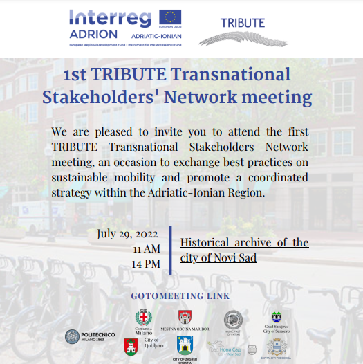 The meeting will be held on 29 July in Novi Sad at the Historical archive and will be an occasion to exchange best practices on sustainable mobility and promote a coordinate strategy within the Adriatic-Ionian Region.